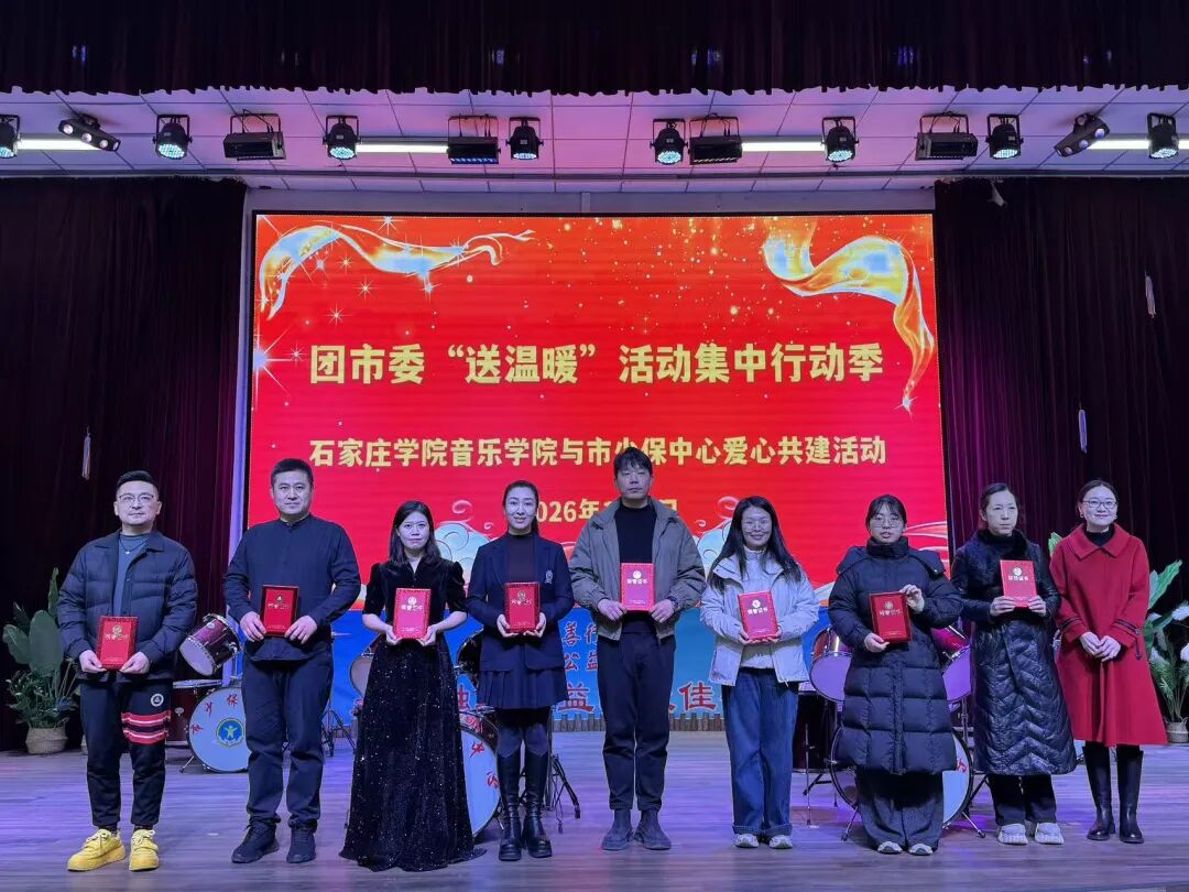 当日下午,少保中心的孩子们与音乐学院师生共同呈现了精彩的文艺演出。活动现场,团市委为石家庄学院音乐学院的9位教师颁发了校外辅导员聘书。学院不仅带来了表演,还向少保中心捐赠了笛子、葫芦丝等乐器,用于丰富孩子们的课余生活。