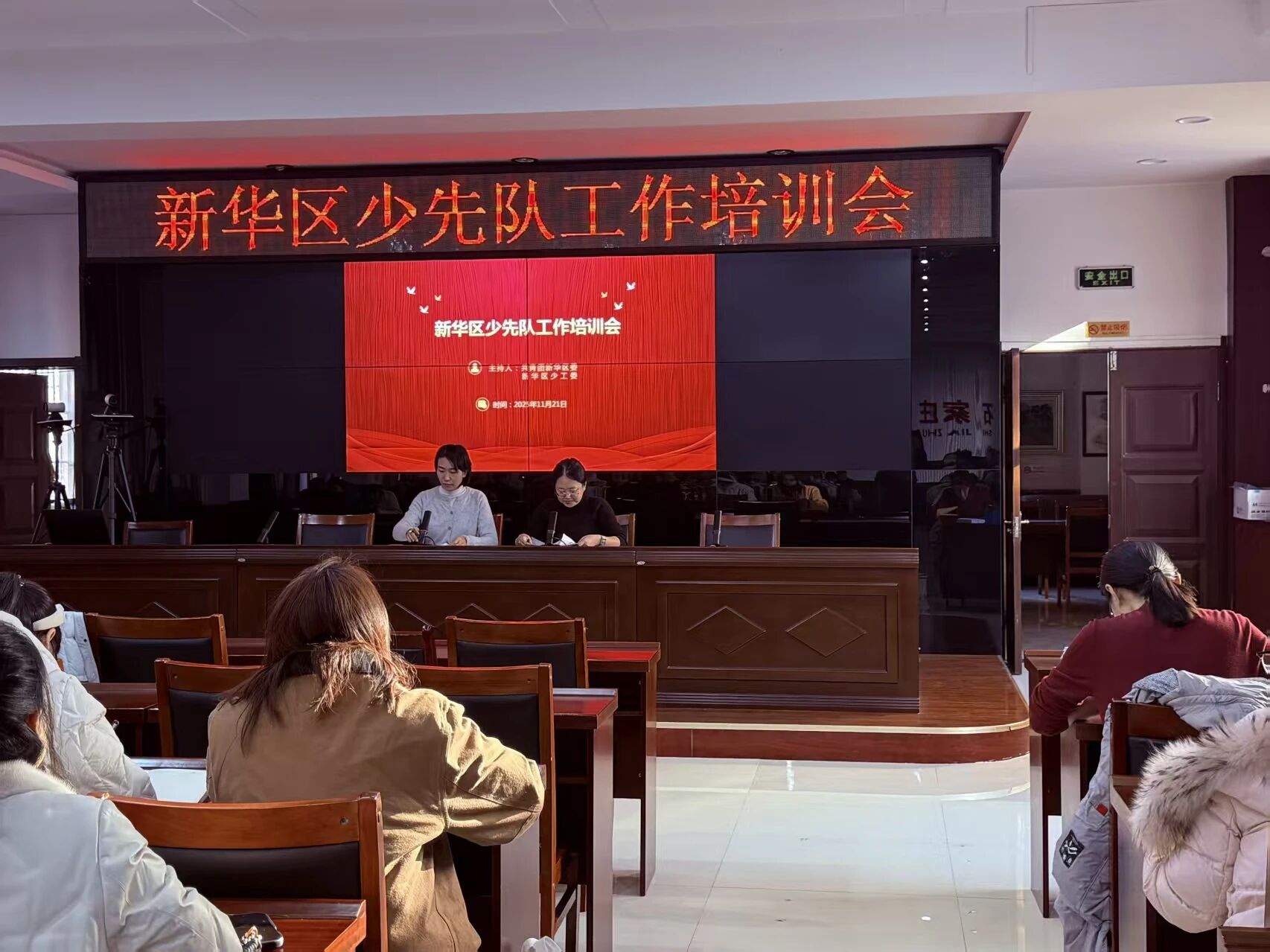 为深入学习贯彻党的二十届四中全会精神,全面落实《地方团委落实全团带队责任规定》要求,强化少先队工作队伍建设,2025年11月21日,共青团新华区委、新华区教育局、新华区少工委在区教育局二楼大会议室召开少先队工作培训会,凝聚共识、为少先队辅导员“充电蓄能”。全区各中小学少先队大中队辅导员共80余人参会。