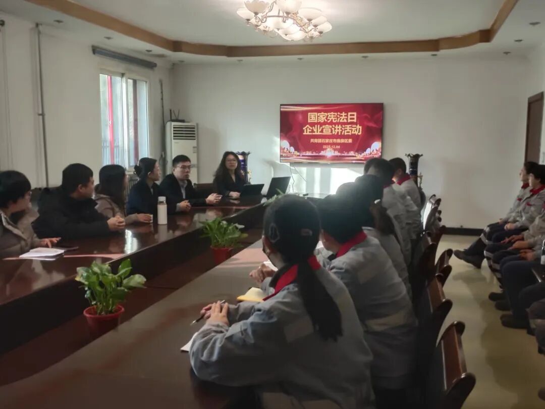 12月4日是第十二个国家宪法日,鹿泉团区委联合河北世纪联合律师事务所走进金隅鼎鑫水泥有限公司,举办“宪法进企业”普法宣传活动,20余名青年职工积极参与。