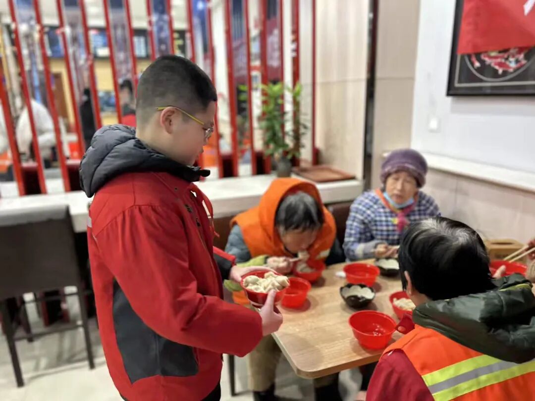 热腾腾的饺子端上来,红彤彤的福字挂起来!2025年12月21日冬至凌晨6点,寒意虽浓,无极县俏滋味麻辣香锅店内却是一片暖意融融、欢声笑语。共青团无极县委、无极县爱心志愿者协会、中共无极县委社会工作部、无极县妇联、县红十字会、县计生协、县美术馆共同举办的"饺子飘香迎冬至、同享佳节暖人心"志愿服务活动在此温情开展,为在寒冬清晨辛勤劳作的城市守护者们送上了一份特别的冬至问候与家的温暖。