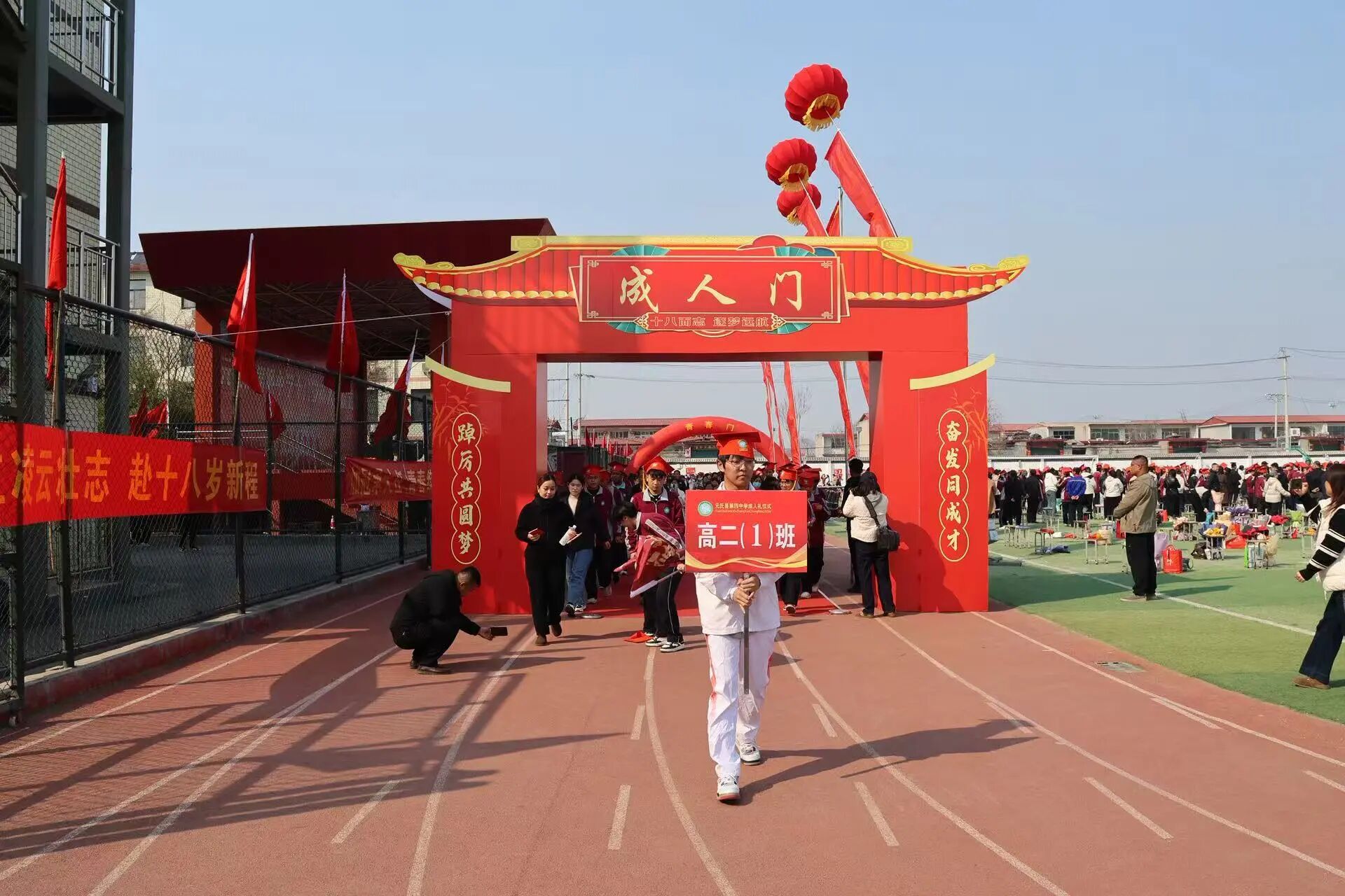 团元氏县委相关负责同志向高二学子致以热烈祝贺,向辛勤付出的老师和家长表示崇高敬意,并向青年学子们提出三点希望:一是深耕当下、勤学不辍,永葆不服输的锐气,用努力为十八岁加冕。二是修身立德、向阳成长,秉持赤子心的情怀,以昂扬姿态奔赴远方。三是心怀家国、逐光致远,践行强国有我誓言,以青春之我续写华章。仪式最后,同学们在纪念条幅上郑重写下自己的名字,与师长、家长合影留念。