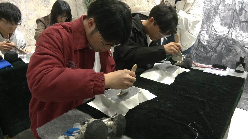 如果说科技与产业展现了无极的现代活力,那么非遗技艺则诉说着无极的文化根脉。青年们被非遗剪纸的魅力吸引,三刻、三套、三衬,八字裱术和五大基本刀法,让纸张蜕变为艺术品,大家纷纷拿起工具尝试,感受民间艺术传承温度;探访北苏袁家饸饹的生产过程,从传承人恪守诚信、尊崇孝道的理念里,读懂非遗背后的家风与坚守;在野风美术中学,青年们探寻传统古法拓印奥秘,观摩这项历经四代改良的技艺以宣纸墨汁还原碑文图案,激发了参与文化传承的热情。